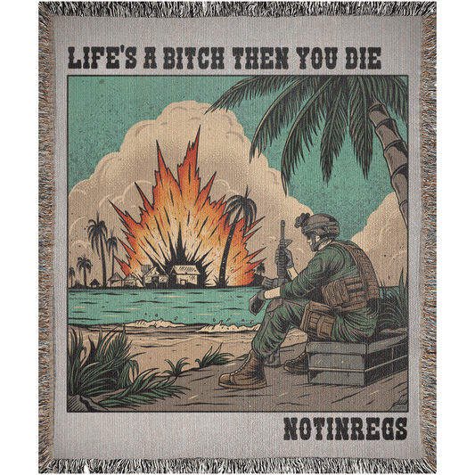 Life's A Bitch Then You Die Woven Blanket