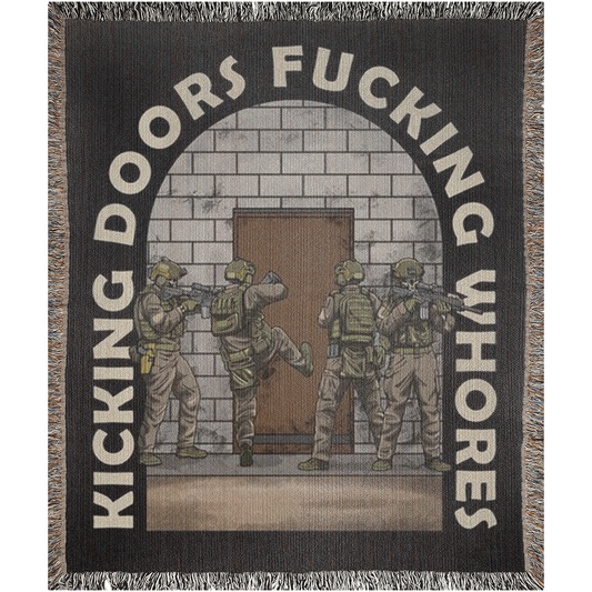Kicking Doors Fucking Whores Woven Blanket