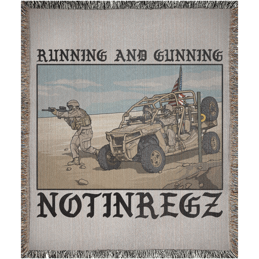 Running And Gunning Woven Blanket